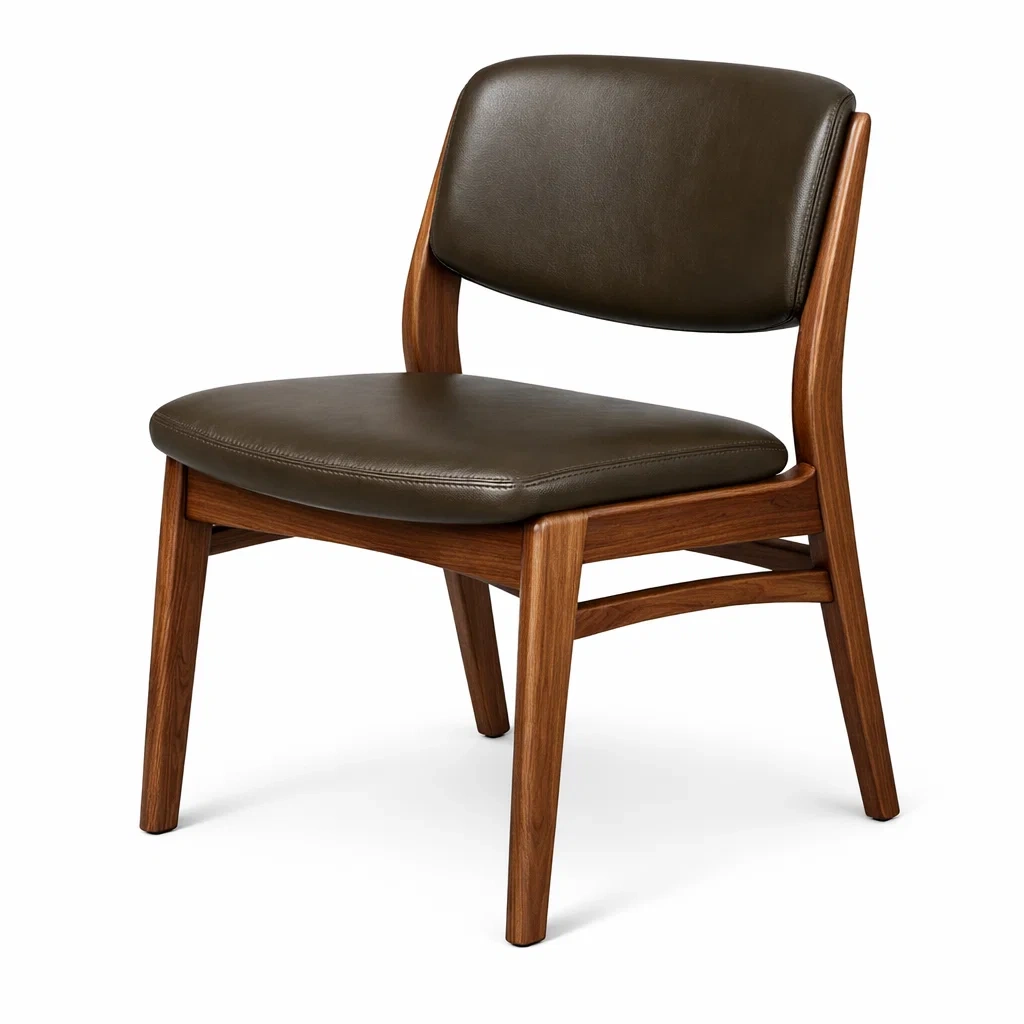 Esszimmerstuhl mit holzrahmen und pu ledersitz braun
