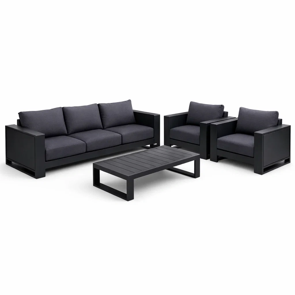 Produktliste: 1 x 3-Sitzer Sofa, 2 x Sessel, 1 x Tisch